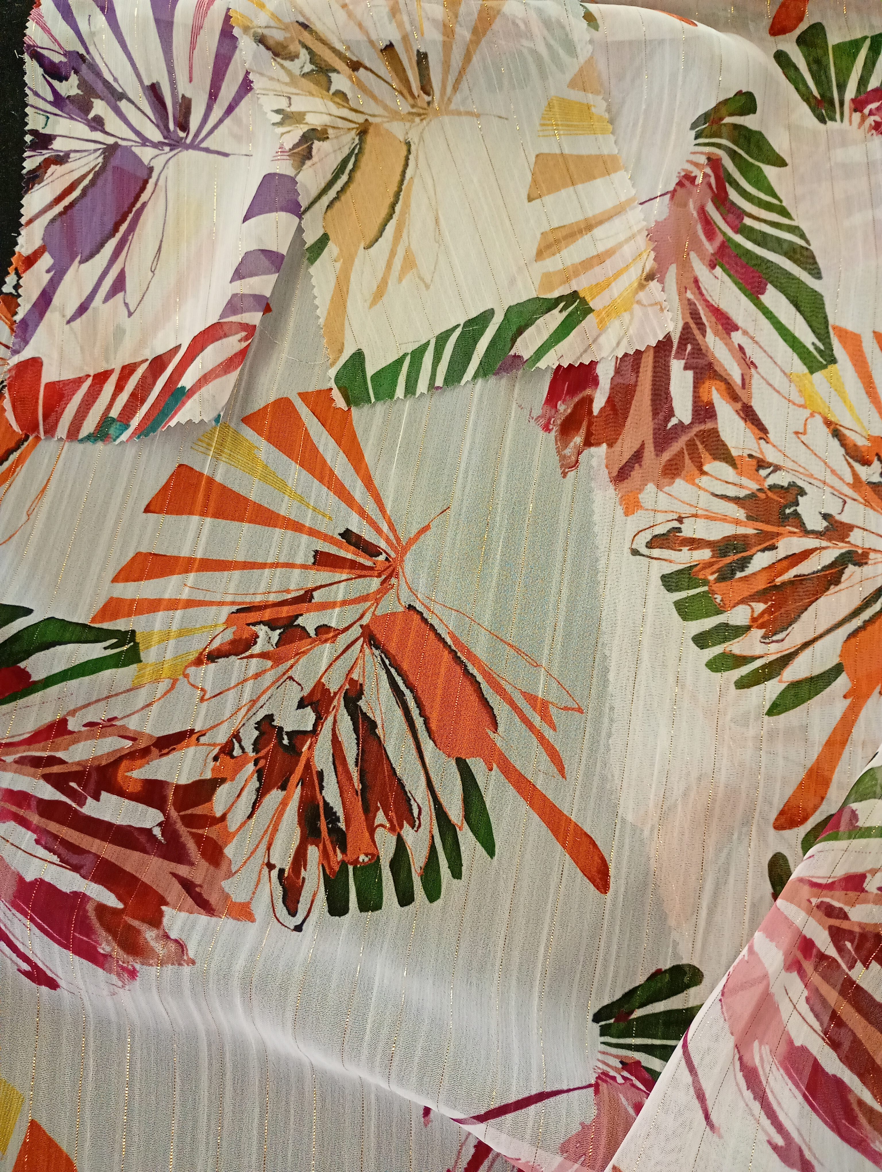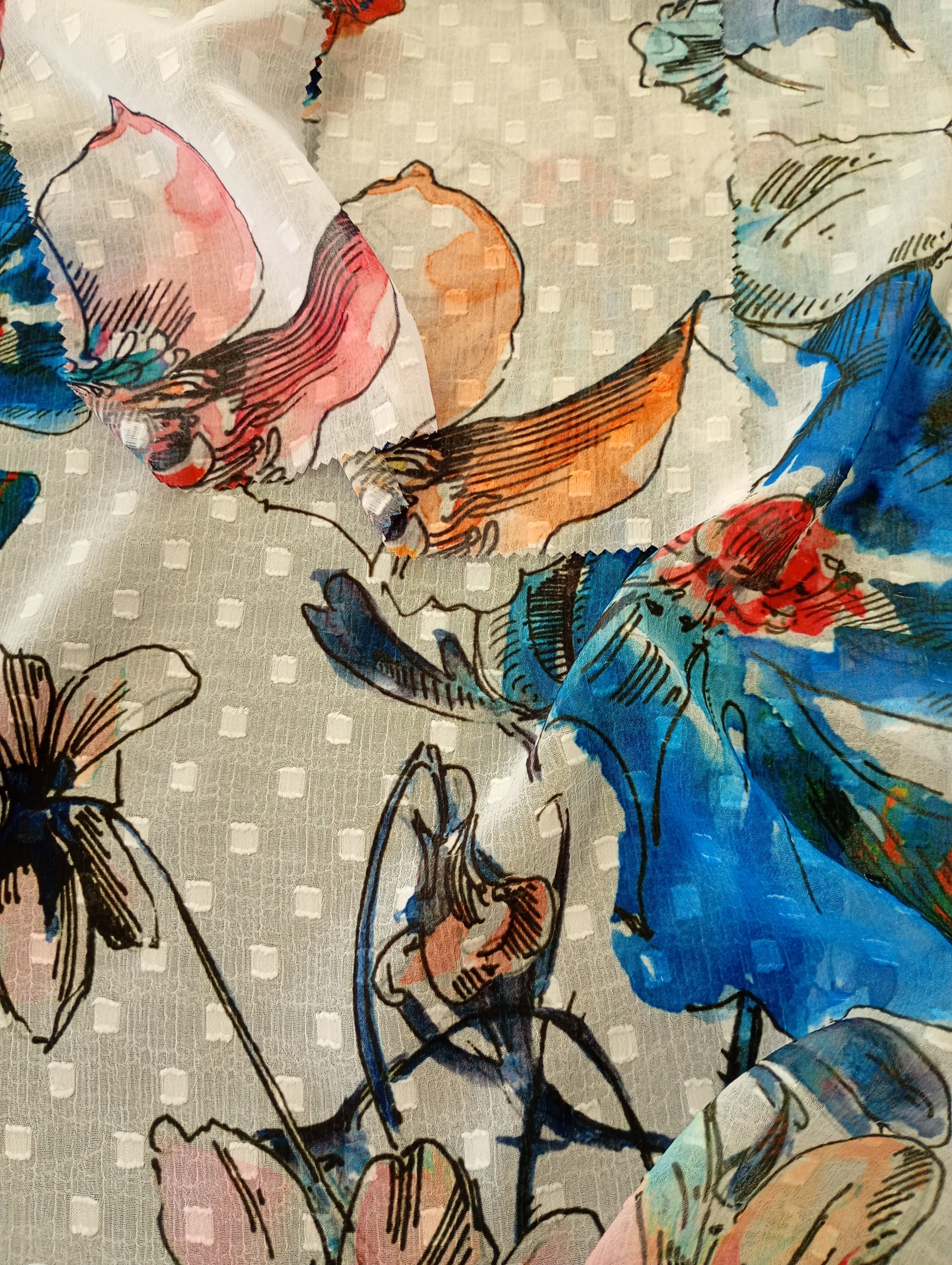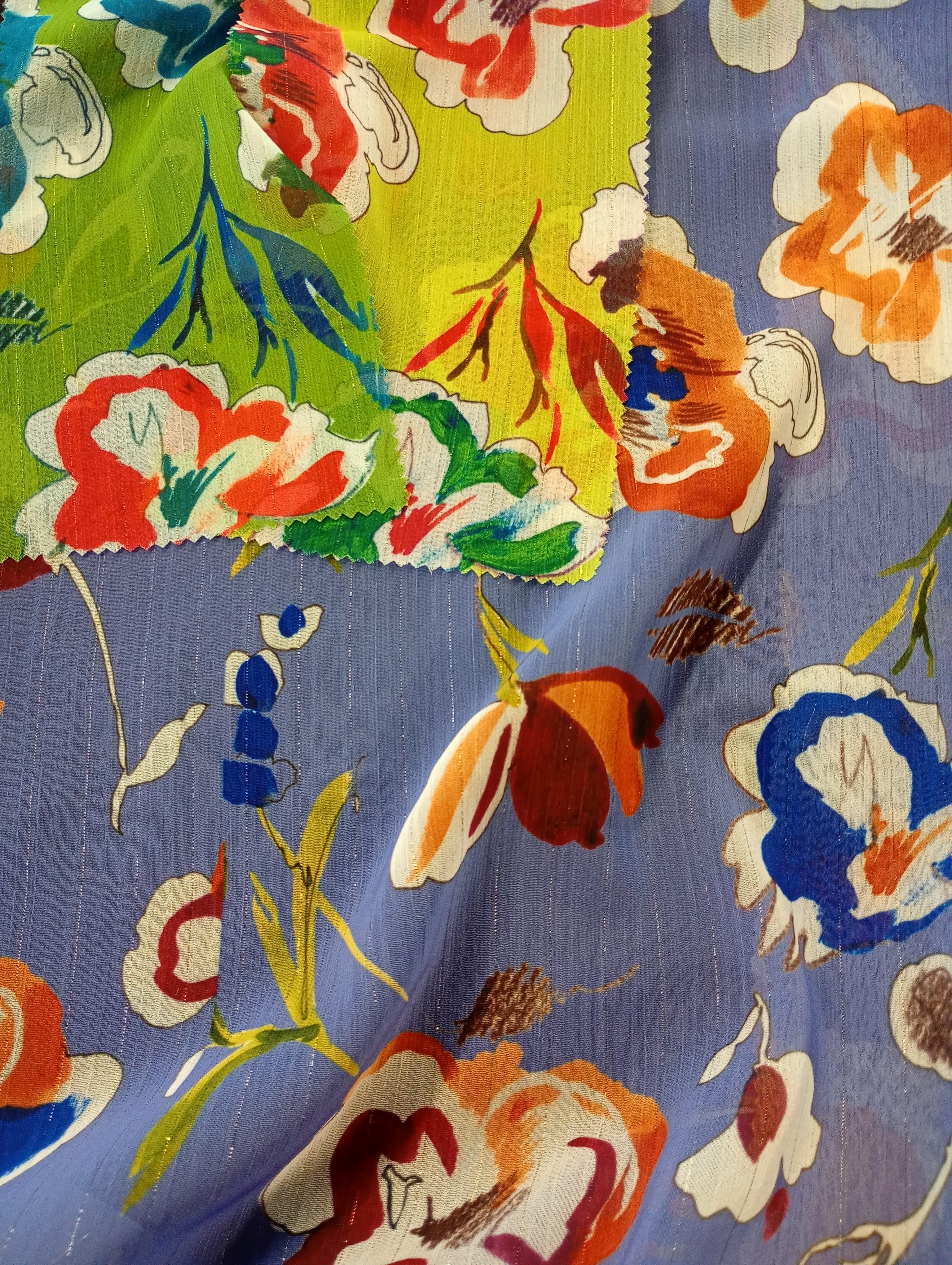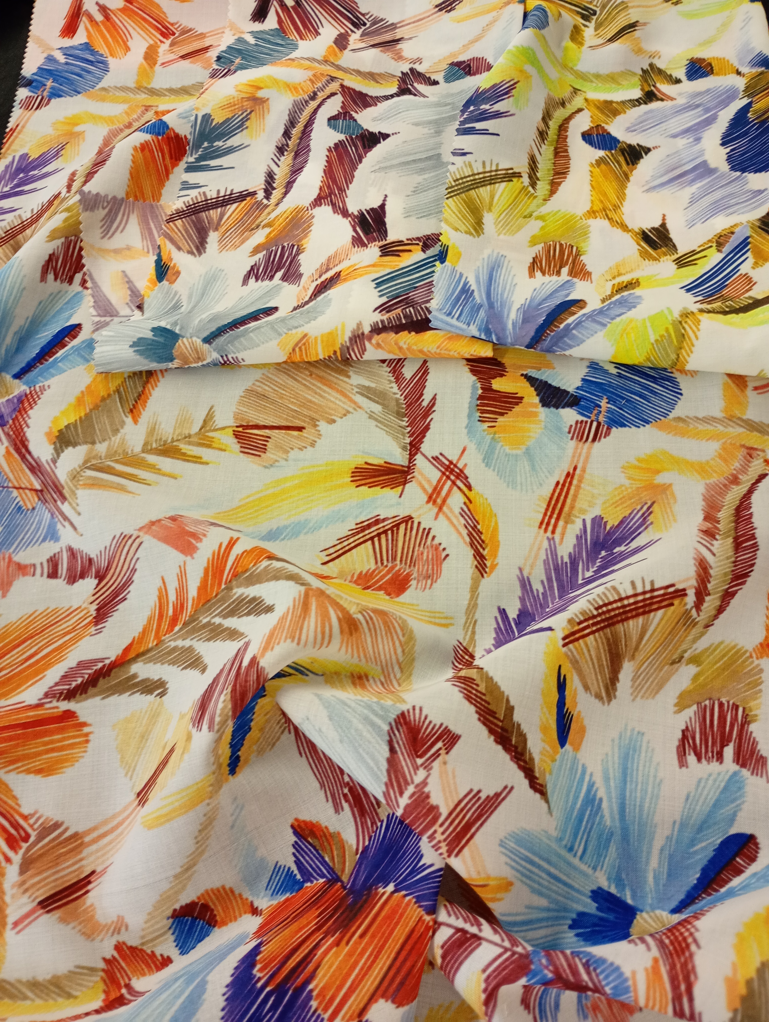 Collezione di stampa su fibre naturali e sintetiche gestita nella nostra struttura produttiva. Un'ampia offerta distribuita nelle quattro stagioni e con la possibilità di completa personalizzazione con il nostro ufficio stile.